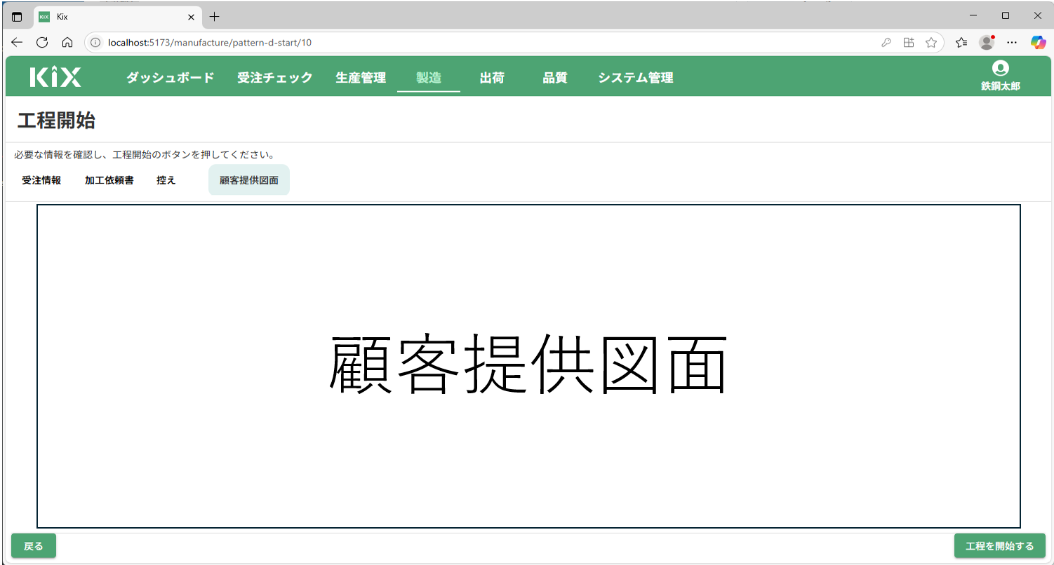 外注準備を完了し、工程を開始するには、工程開始画面のいずれかのタブで「工程を開始する」ボタンを押してください。