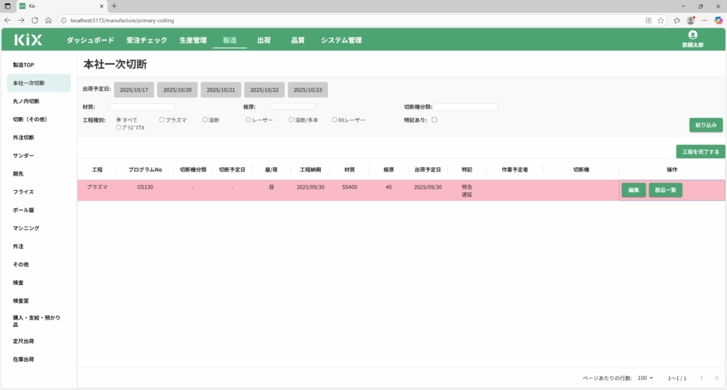 「編集」ボタンを押すと、「作業予定者」と「切断機」が編集できるようになります。
