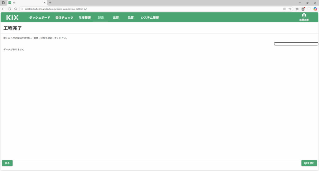 画面が工程完了画面に変わりますが、最初はデータがない状態です。