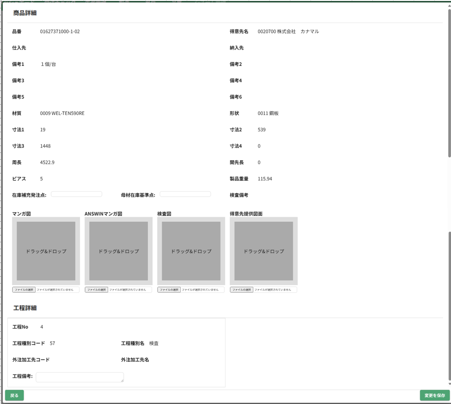 KIXシステムで扱う商品(品番)の情報を閲覧します。また、発注点や図面など、品番に紐づく情報の登録を行います。