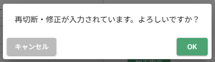 「再切断」または「修正」に1以上の値を入力して「完了」ボタンを押したとき、確認ダイアログが表示されます。