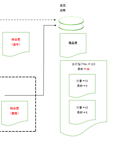 1つの指示No.に属するすべての枝番について全工程が終わると、枝分かれした分が合流します。